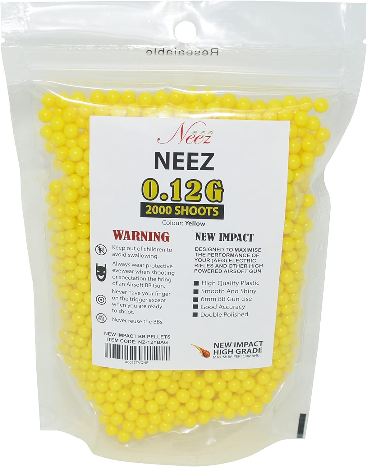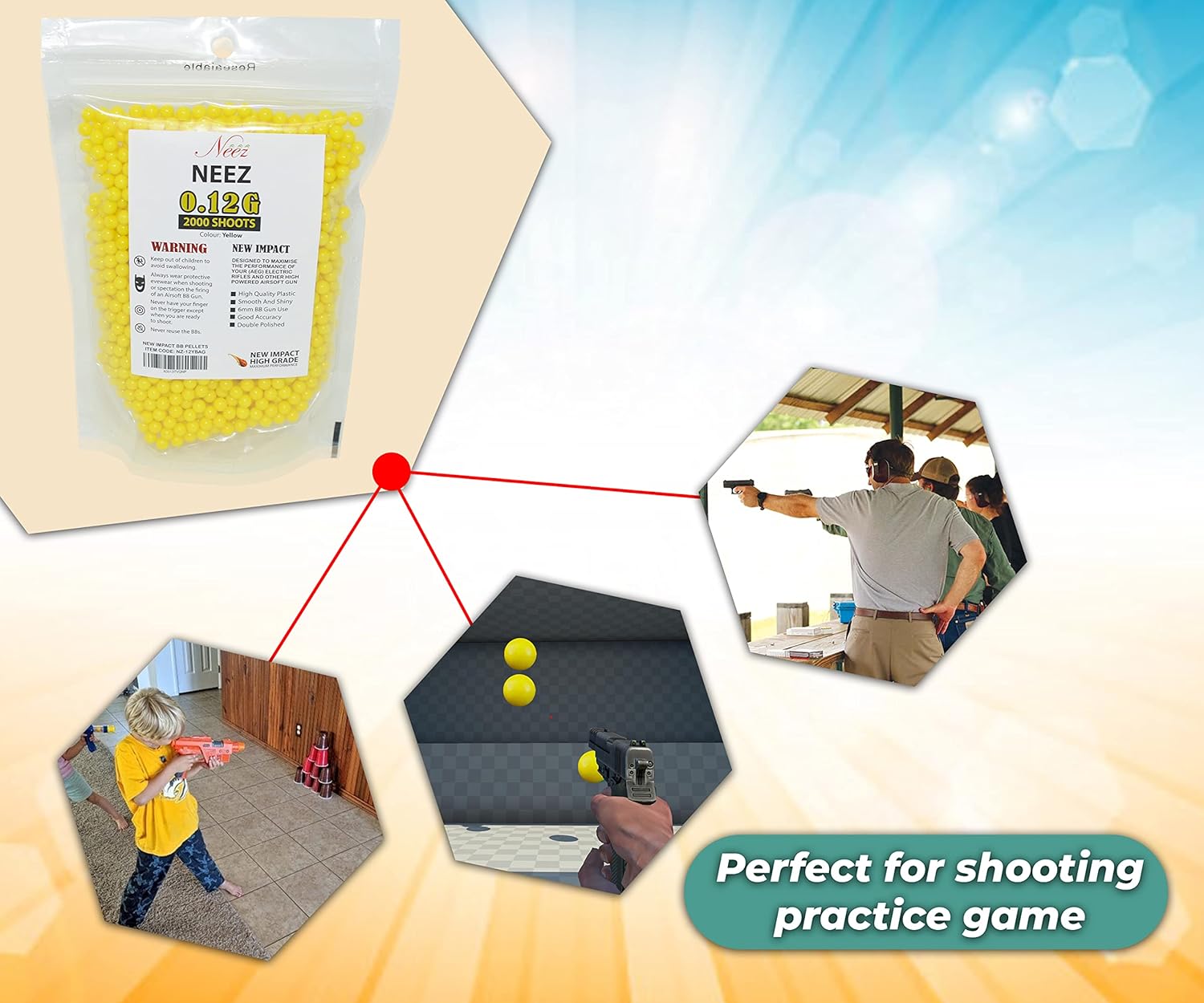 Generous Quantity: The package contains 2000 rounds of Neez Airsoft BB Pellets, giving you plenty of ammunition for extended airsoft sessions.