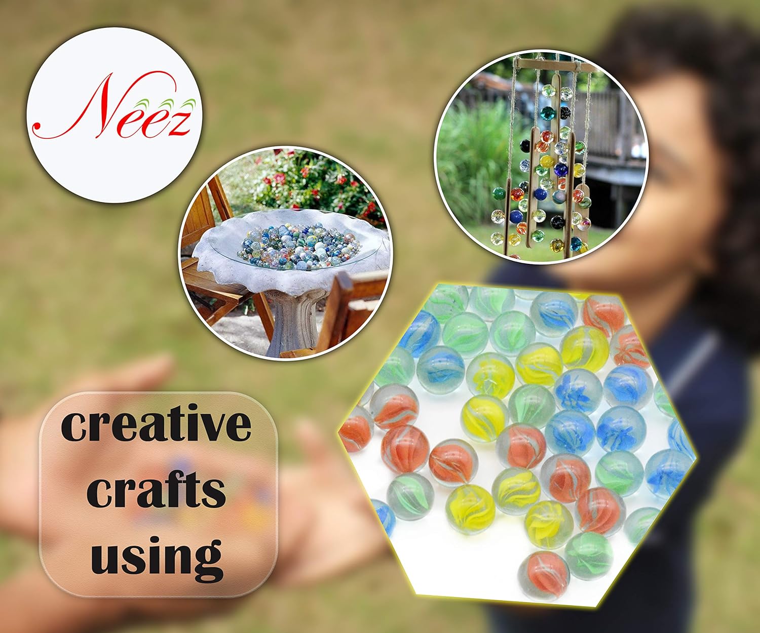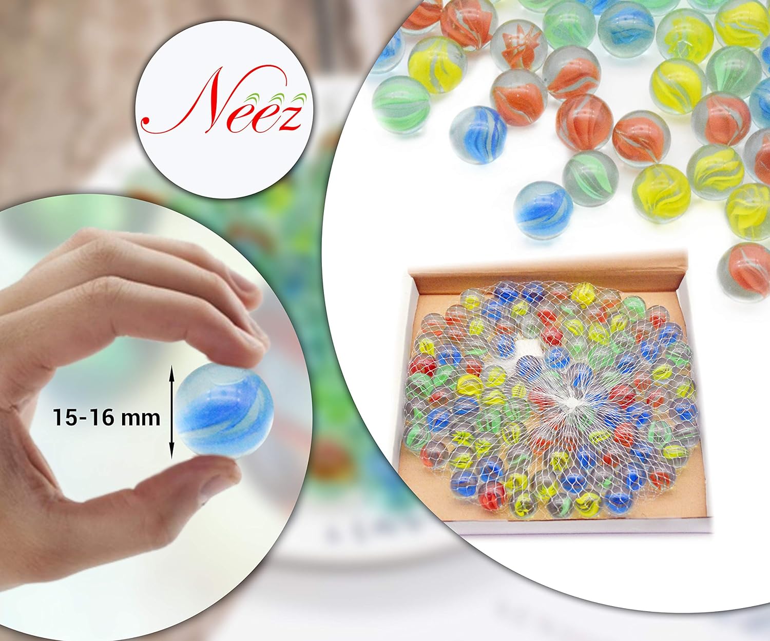 DIMENSIONS AND COLOR: Each marble has a special design with green, red, yellow and blue colors with dimensions of 15-16mm and a weight of 955gm (approx.)