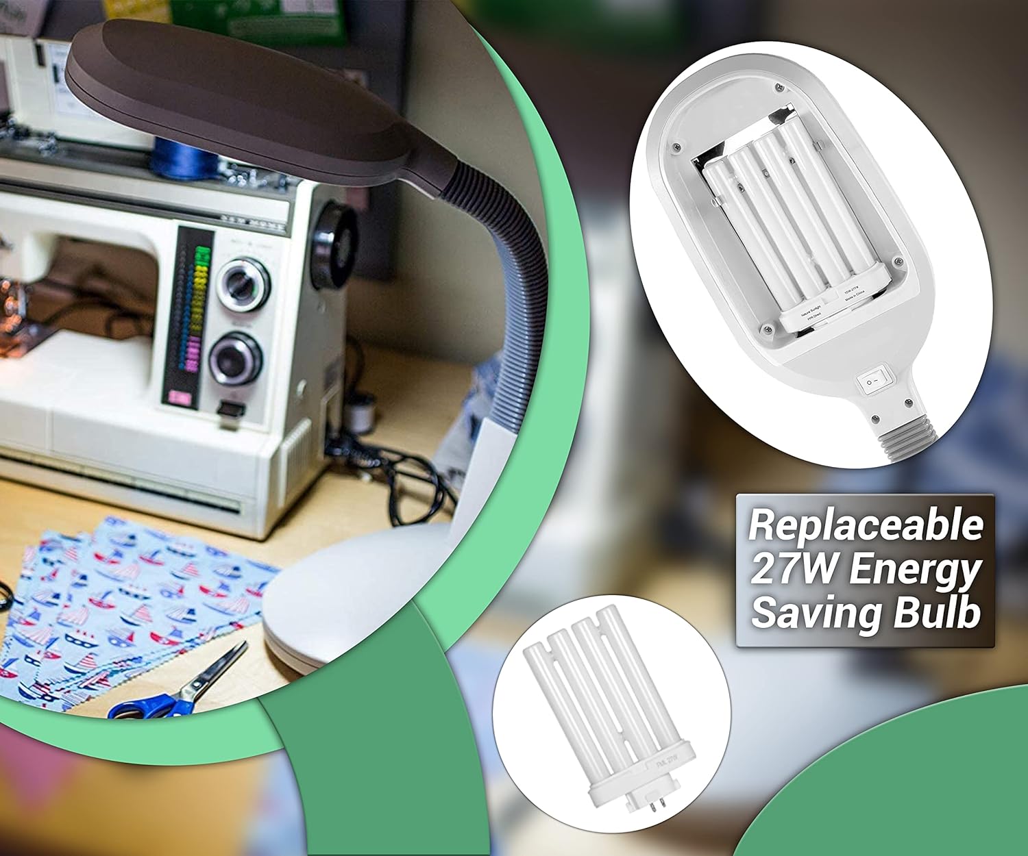Desk Lamp with 27w Replacement Economical Daylight Bulb High Vision Reading Lights (Energy Class A++)