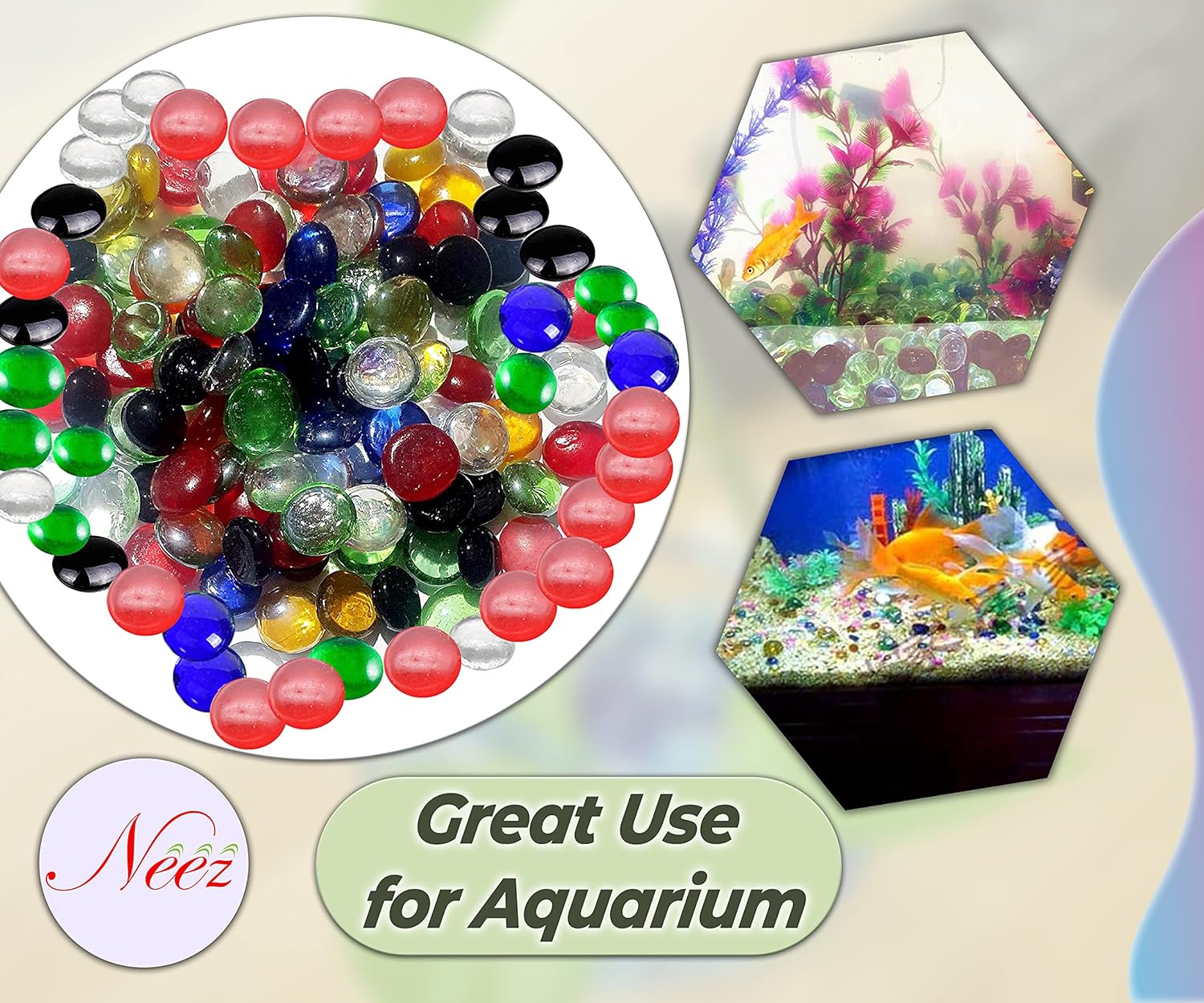 Versatile Use: These glass pebbles can be used for a wide range of decorative purposes, such as enhancing the visual appeal of fish tanks, aquariums, vases, plant pots, gardens, and home decor. Their bright Mixed color adds a pop of vibrancy to any setting.