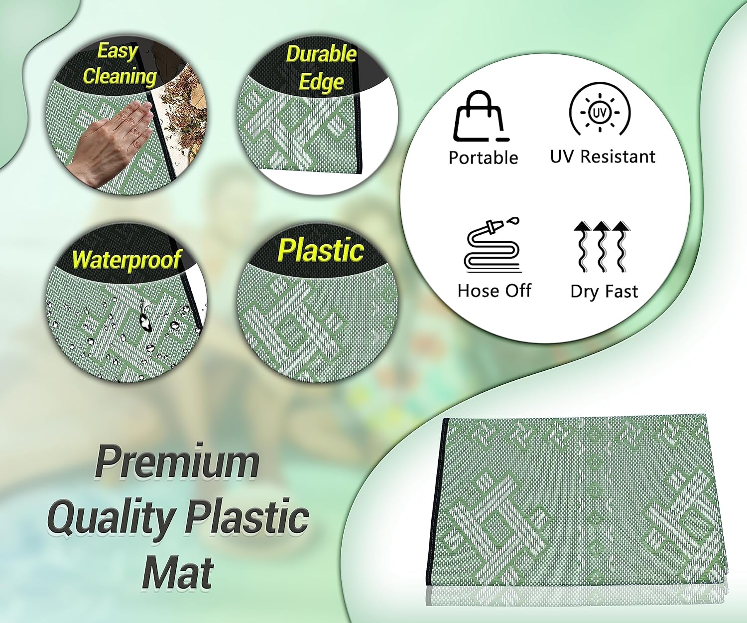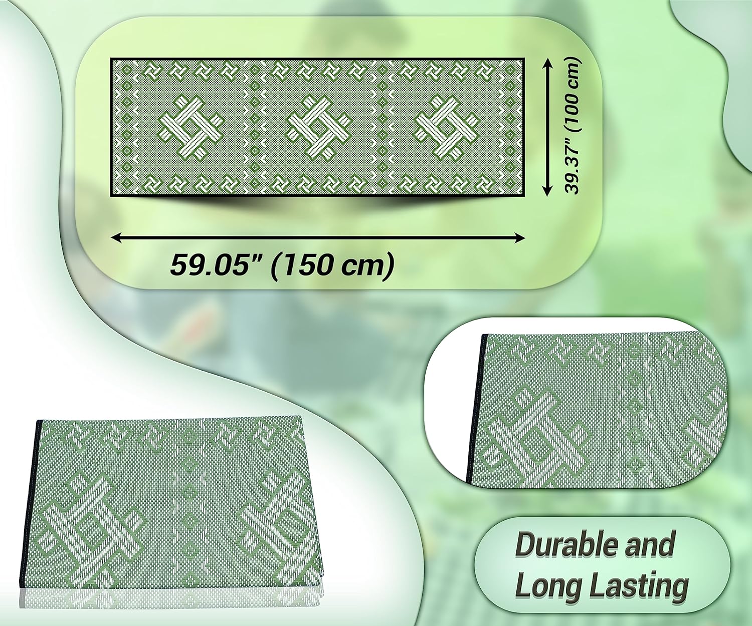 PORTABLE: Rugs are made of Plastic straw rug, Lightweight, can be rolled or folded into compact size for storage and are portable for camping or picnic