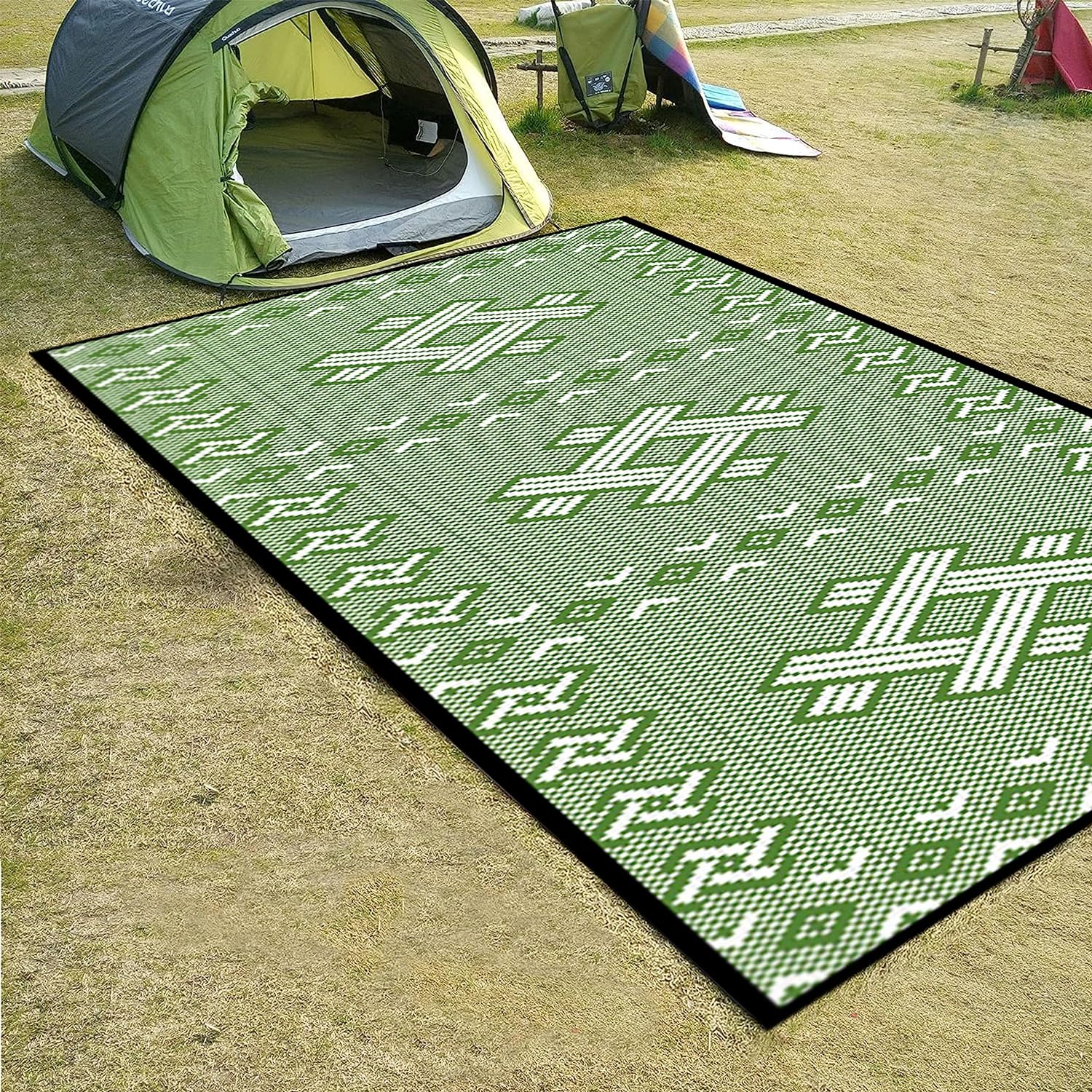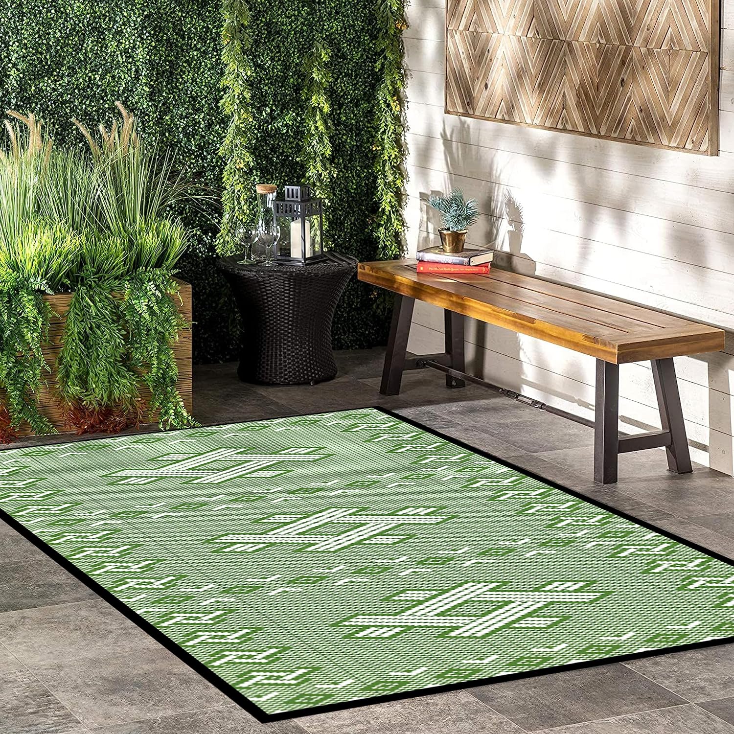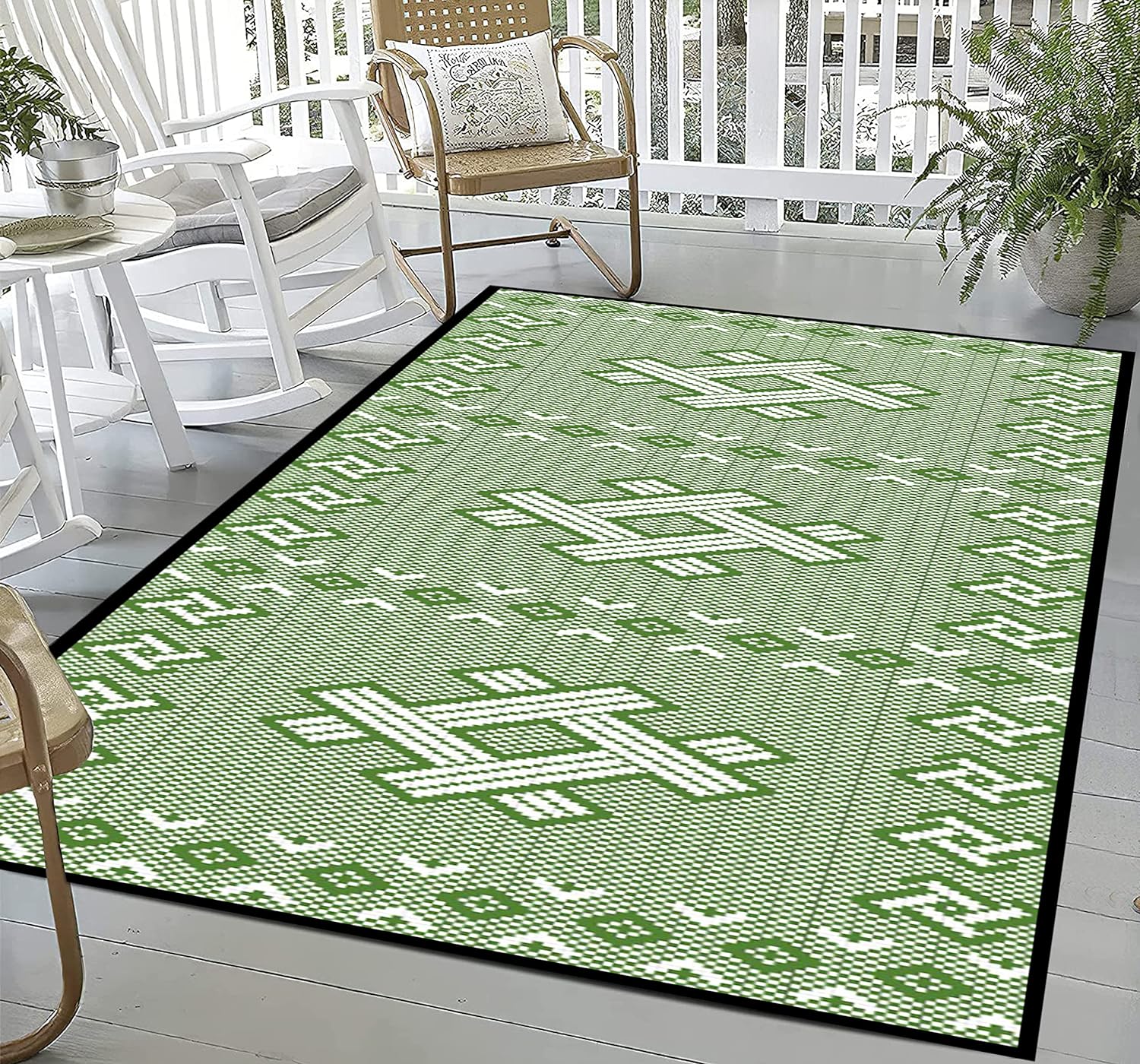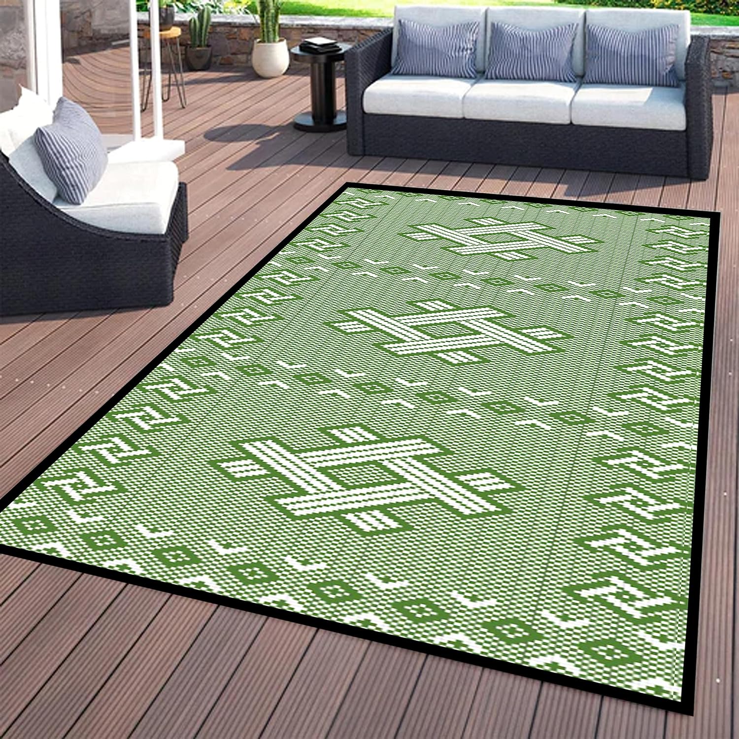 DURABLE & REVERSIBLE: Hemming process to prevent outdoor rugs from falling apart. Fixed rings design at the four corners to prevent movement
