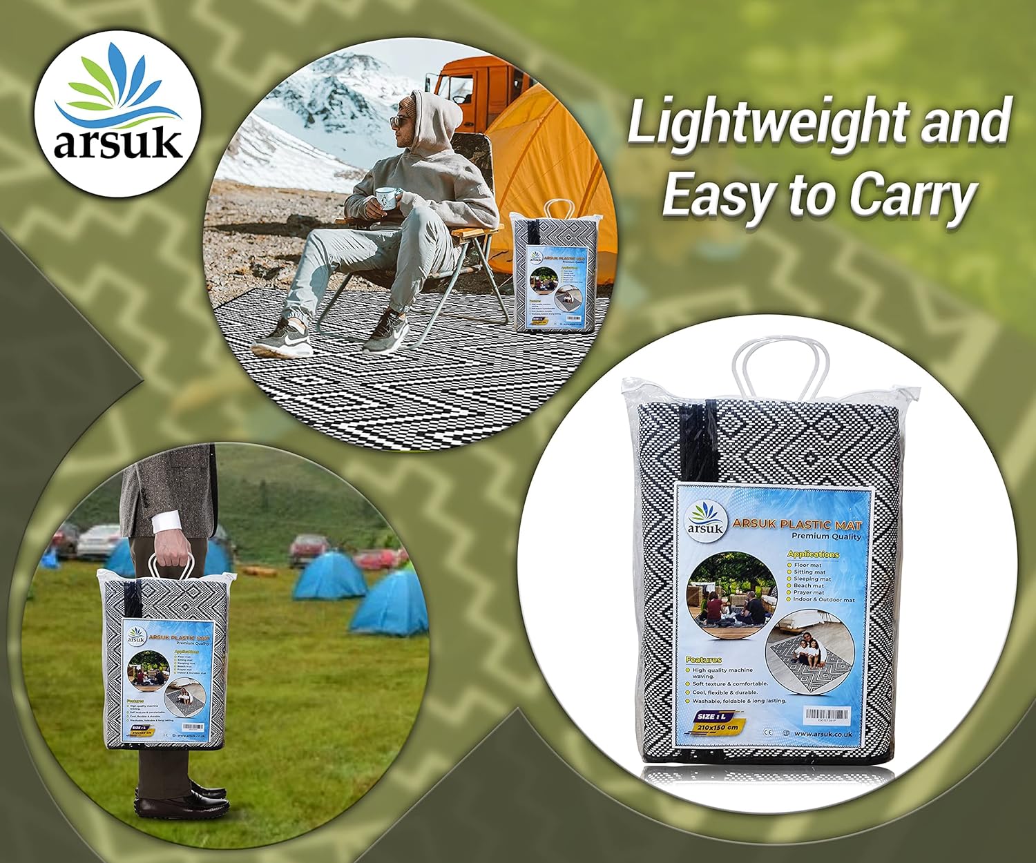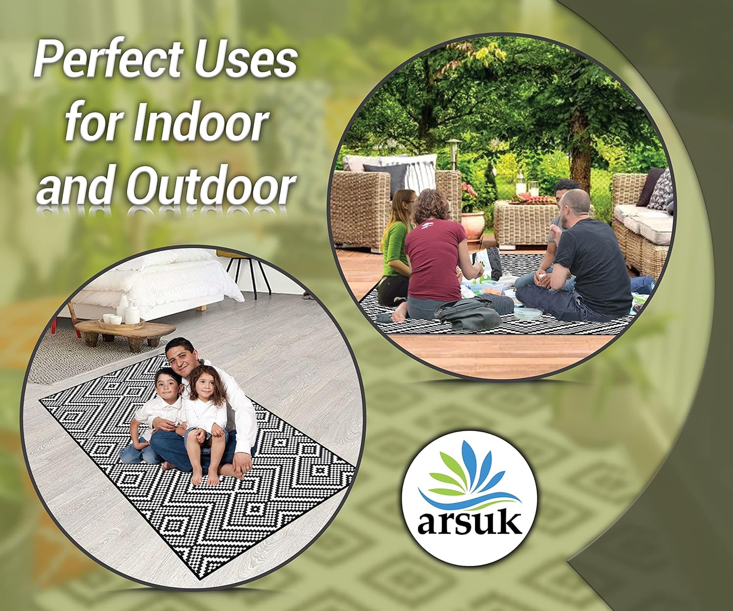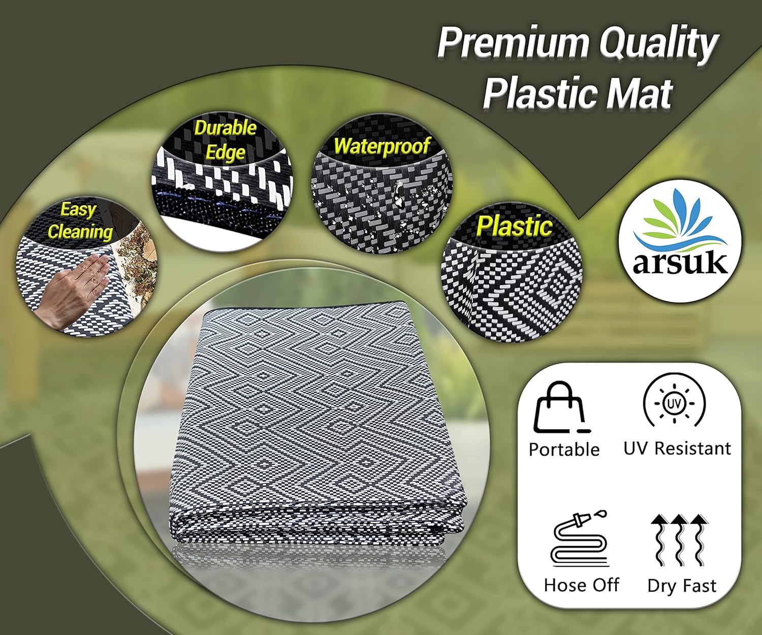 PORTABLE: Rugs are made of Plastic straw rug, Lightweight, can be rolled or folded into compact size for storage and are portable for camping or picnic
