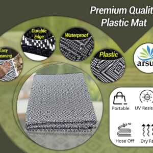 Outdoor Rug Waterproof Lightweight Foldable Plastic Reversible Mat (210x150cm – Black & White)