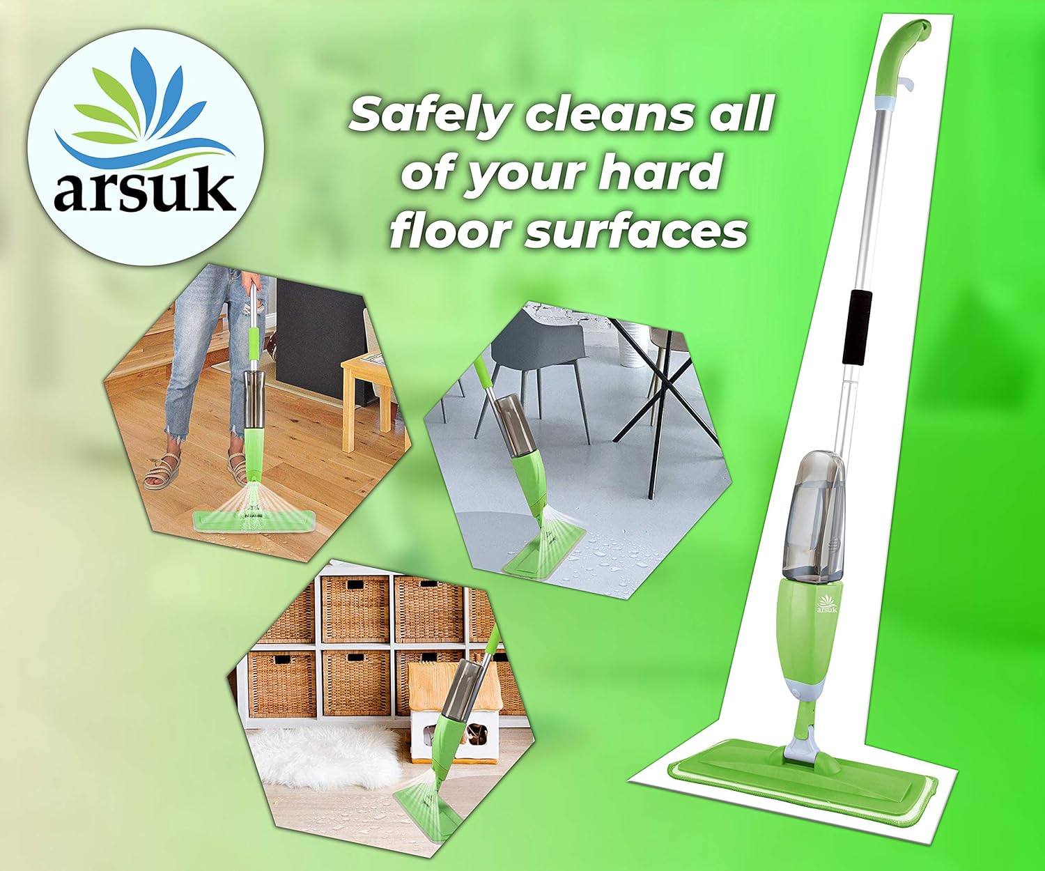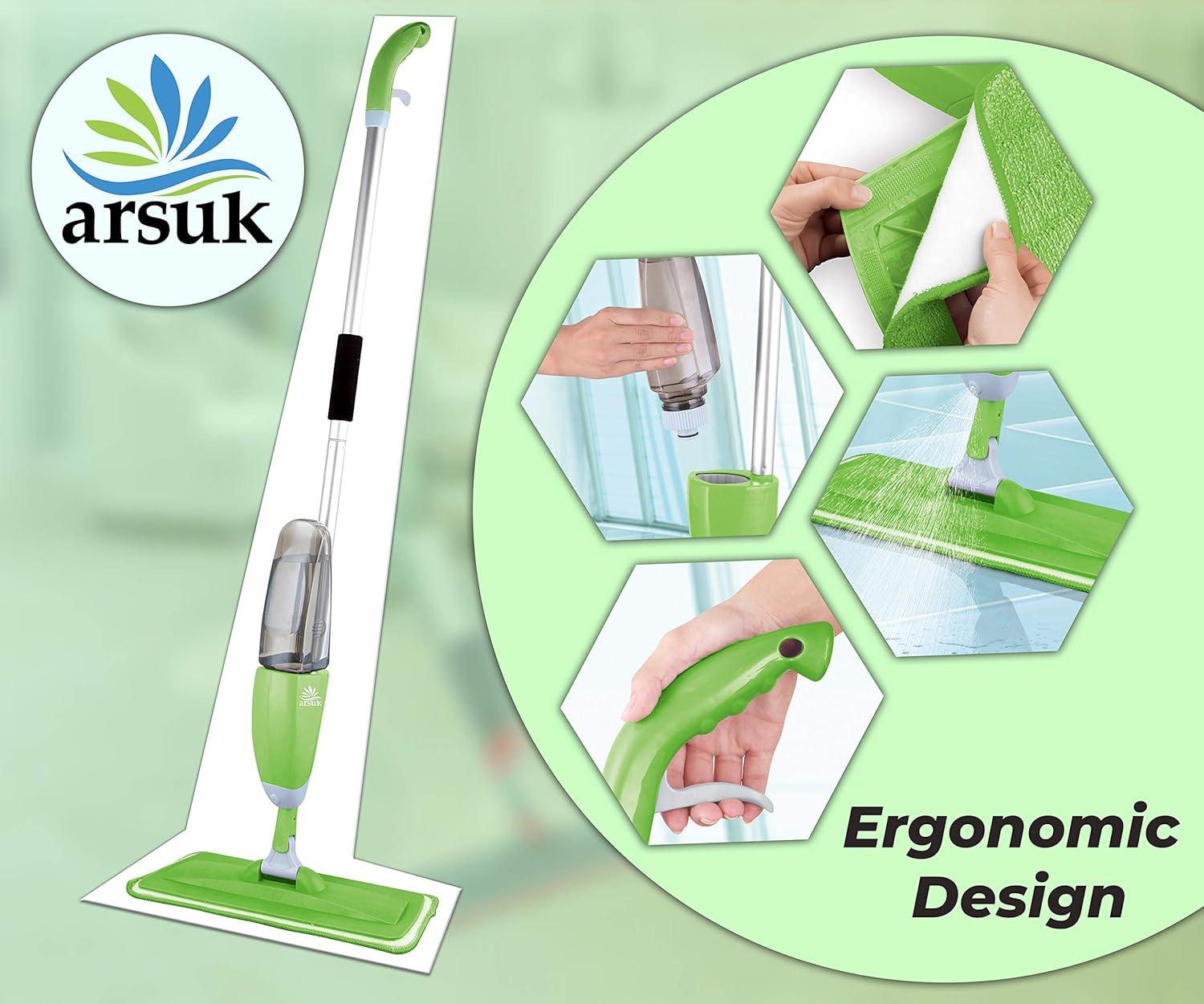 Benefit – The Spray mop can be used on most smooth floor types including wood, vinyl, marble, tiles and other smooth surfaces. Also, ideal for eliminating the most stubborn dirt, oil stain, on your wall, windows, living room, ceiling, kitchen room, under furniture and even corners hard to reach, bring you a tidy environment